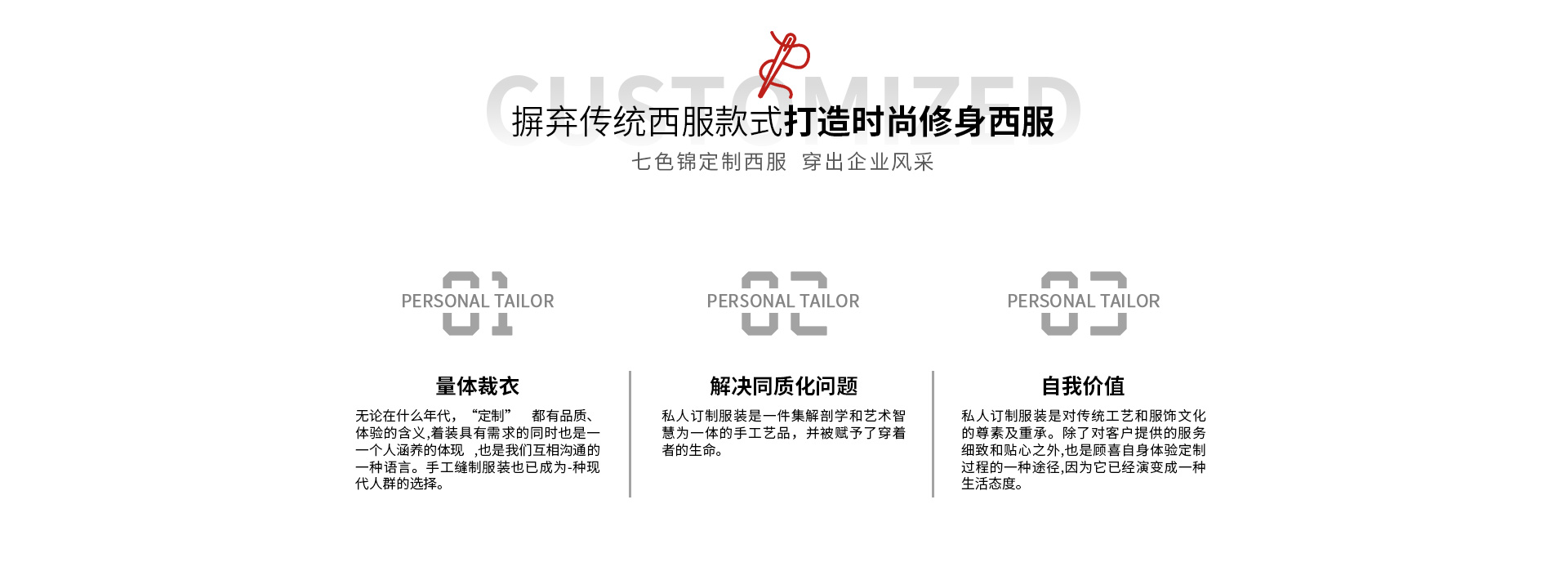 安徽七色錦服飾有限公司成立于2011年07月19日,公司位于安徽省合肥市包河工業區延安路17號,廠房面積約5000平方米,投資資金1000萬元。作為一家集服裝設計,生產,服務于一體的中、檔次高的西裝、襯衫企業,服務專業、顧客滿意”的經營宗旨、以“客戶為先、市場導向”為經營理念更好的服務于廣大消費者、依靠高超的技術,先進的設備,嚴格的管理,穩定的產品質量,精細的制作工藝,周到的客戶服務贏取了廣消費者的信賴和好評.各類服裝服飾專業技術人員100多人,各類先進的生產設備150多臺,具有設計、制造各類服裝服飾的能力。公司是以從事中、檔次高的西服、襯衫、西褲、西裙、大衣、領帶、皮鞋等設計、生產、銷售一體化為主,為證券、單位、團體、酒店、學校等企事業單位定制專業的服飾公司并通過了ISO19001:2015質量體系認證、ISO14001:2015環境體系認證、OHSAS18001:2007職業健康安全管理體系等認證...